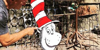 One of our first projects, this 18 ft tall rose was Inspired by a 100 ft version, Steve saw in Vegas. We created it modular so that shipping and installation in Steve's garden in San Fran was pretty easy. Loved the introduction of color to this piece. We always use car body paint for longevity and they have some of the most beautiful colors! We completed this project in one full week.