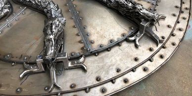 Weighing in around 500 Ilbs this roaring chunk of steel was created with the leading criteria of it being "Bad Ass"! Steve came with a few photos for scale and style and off we went on this collaborative Dragon adventure to "Make his Idea Tangible"! This project took the 2 of us over 6 weeks and 10 hours a day, during the desert summer of 2017. Now it stands tall at the main front entrance of Steve's San Francisco family residence.